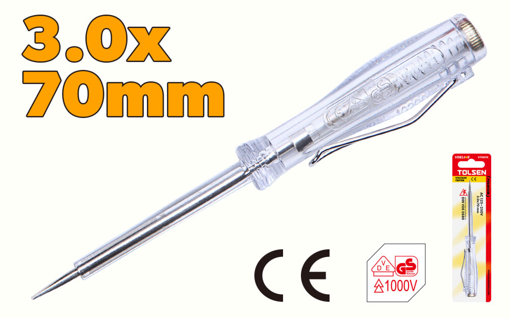 Cu Aparatul de testat tensiunea 3x70 mm, VDEline PREMIUM, ești pregătit pentru orice situație de lucru. Este un cadou perfect pentru tine sau pentru cineva drag care are nevoie de un aparat de testat tensiunea în trusa de unelte.