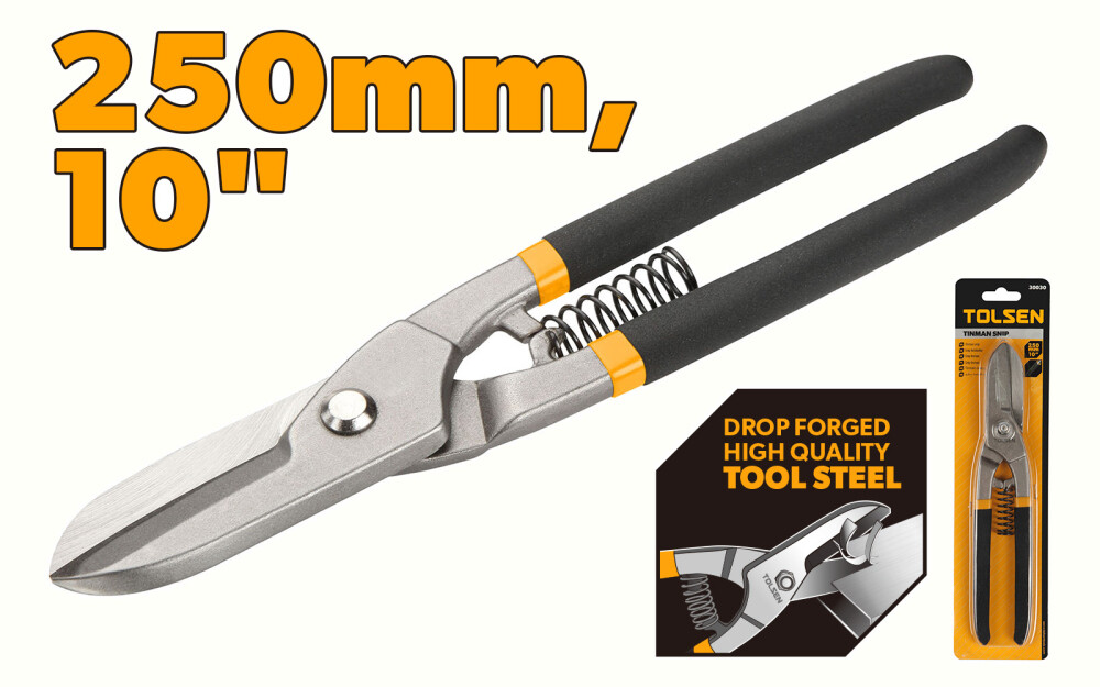 Această foarfecă de tablă Tolsen este fabricată din oțel de calitate superioară și este ideală pentru tăierea diverselor materiale din tablă. Fabricată din oțel forjat de înaltă calitate, această foarfecă de tablă este durabilă și rezistentă la uzură. Măsurând 10 "/ 250 mm lungime, această foarfecă are un mâner acoperit cu un strat de cauciuc pentru o prindere confortabilă și sigură. Ambalat într-o carte blister, acest instrument de tăiere este ușor de utilizat și de depozitat în orice loc.