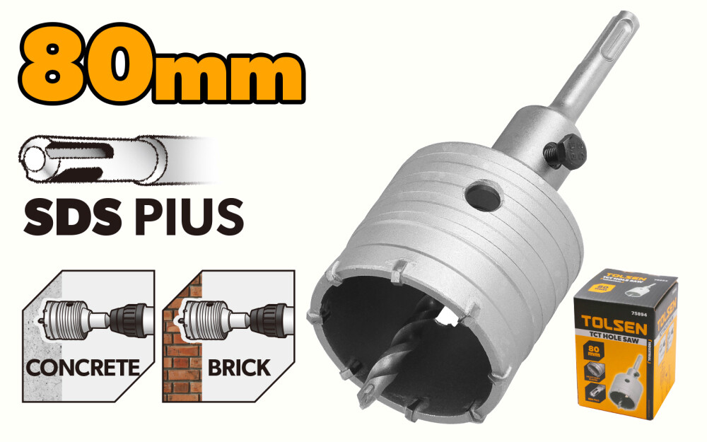 Aceasta carota cu vidia Tolsen este special conceputa pentru a fi folosita in prelucrarea betonului si a materialelor similare. Are un diametru de 80mm si o prindere SDS pentru a fi compatibila cu majoritatea ciocanelor perforatoare. Lamele sunt foarte rezistente si au o durata de viata indelungata.