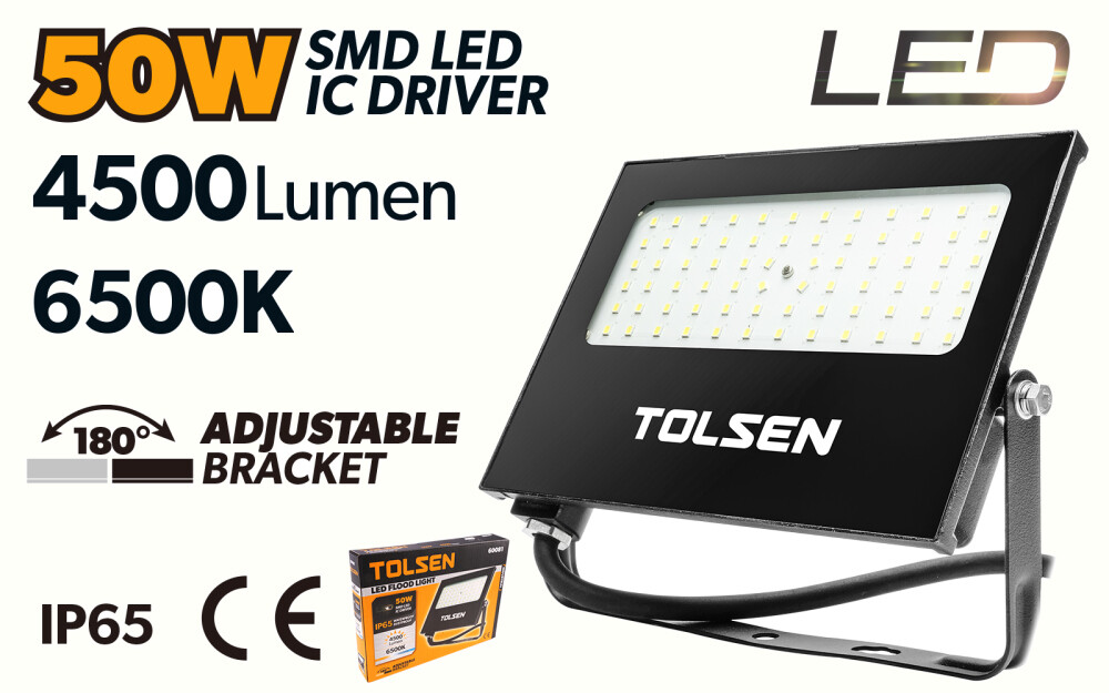 Proiector LED, 50W, 4500 Lumeni, 6500K, Reglabil la 180°, Tolsen