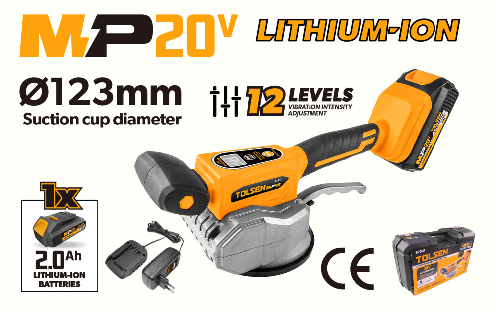 Uneltele tip vibrator Tolsen MP20V sunt ideale pentru aplicarea gresiei și faianței în proiecte de construcție și renovare. Oferă o performanță ridicată în asigurarea unei aderențe uniforme și previne apariția bulelor de aer, contribuind la un finisaj profesional.