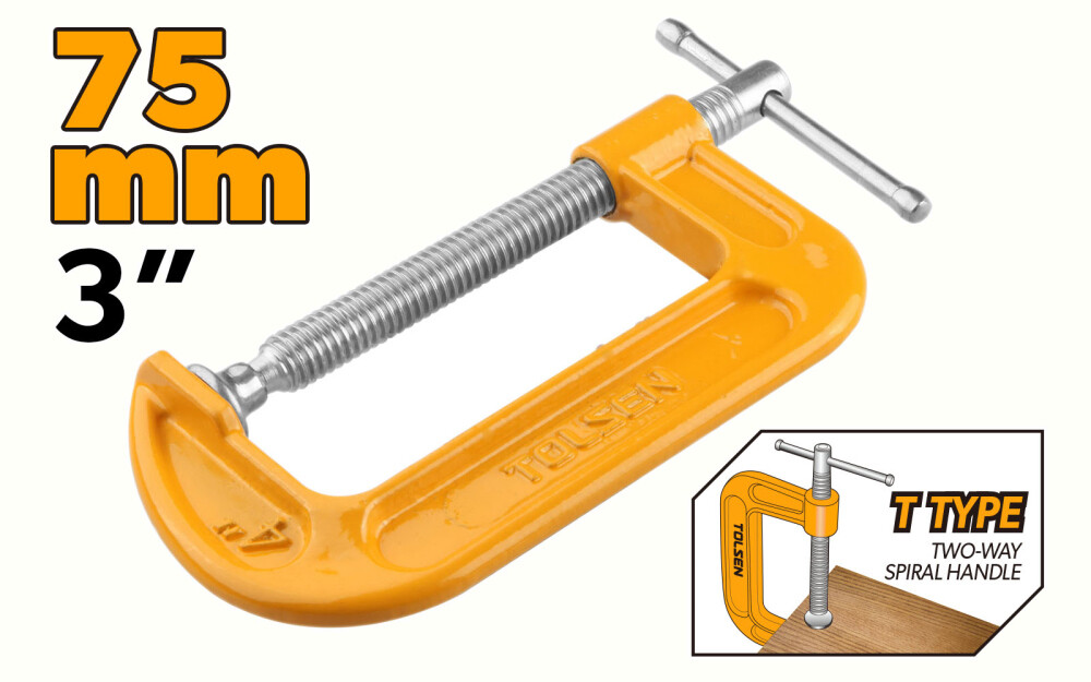 Mai mult decât o simplă menghină, Menghina tip G Tolsen este partenerul ideal în proiectele tale de construcție și reparare. Cu o lungime de 75 mm, această menghină poate fi utilizată pentru o varietate de sarcini și îți va oferi o putere și o stabilitate fără egal.