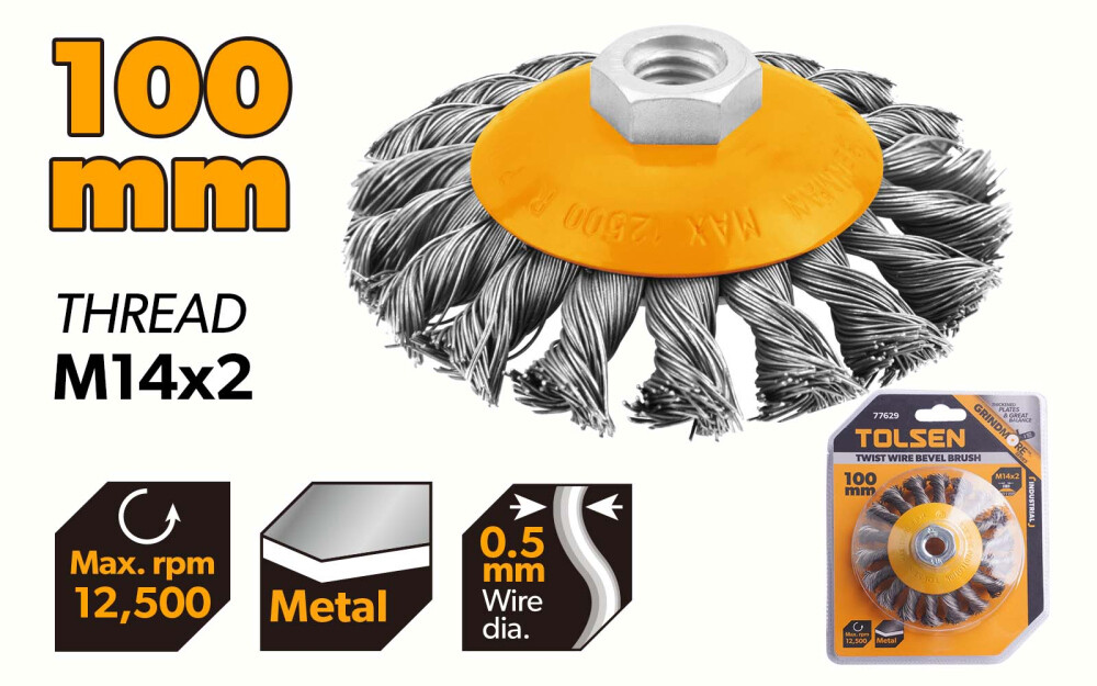 Obține rezultate profesionale în lucrările tale de polizare cu peria pentru polizor unghiular Industrial - Tolsen. Cu o dimensiune de 100mm și sârmă răsucită din oțel inoxidabil, această perie oferă performanțe de înaltă calitate și rezistență la coroziune.