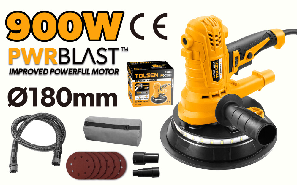 Cu aparatul de slefuit pentru gips-carton PwrBlastX de la Tolsen, obtineti performante superioare in slefuirea suprafetelor de gips-carton. Acest aparat este dotat cu un motor puternic PwrBlastX Super Performance, care asigura o viteza de slefuire impresionanta si o putere constanta pentru a indeplini cu succes orice sarcina de slefuire. Cu o putere de intrare de 900W si o tensiune nominala de 230-240V, acest aparat de slefuit este capabil sa se adapteze cerintelor dvs. de lucru, indiferent de proiectul pe care il aveti.