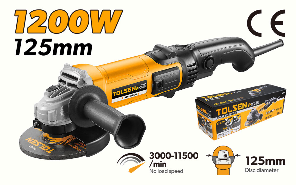 Polizorul unghiular de la Tolsen este un instrument puternic si durabil, proiectat pentru aplicatii industriale si de bricolaj, cu aceeasi calitate ca si modelul Dewalt. Cu o putere de intrare de 1200W si un diametru de disc de 125mm, acest polizor unghiular este ideal pentru indepartarea ruginei, slefuirea si taierea materialelor.