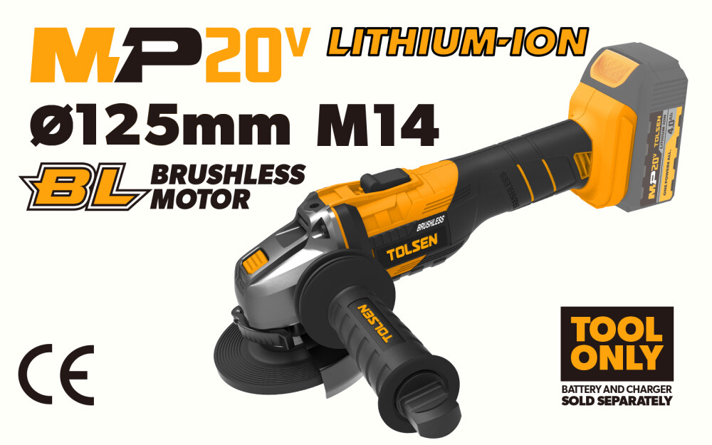 Polizorul unghiular fara fir cu acumulator Li-ion Brushless de la Tolsen vine insotit de o maner lateral si o cheie reglabila. Acumulatorul si incarcatorul nu sunt incluse in pachet.