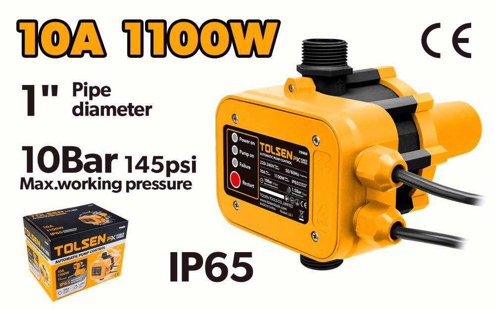 Această prescontrol automat Tolsen este proiectată pentru a fi ușor de utilizat și de instalat. Prescontrolul are o putere de intrare de 1100W, o tensiune nominală de 220-240V și o frecvență nominală de 50/60Hz.
