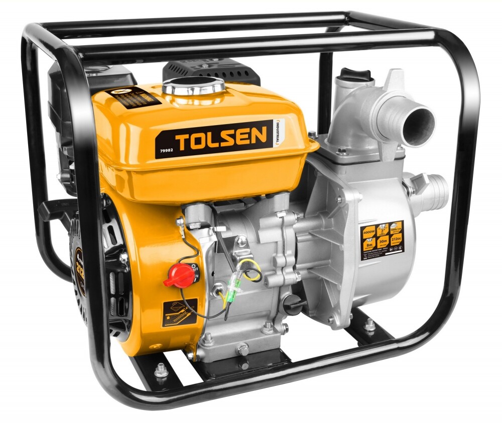 Această motopompă Tolsen este proiectată pentru a fi utilizată în aplicații industriale de pompare a apei. Motopompa are un diametru al orificiului de aspirație și de evacuare de 75mm (3"") și o deplasare de 212cc.