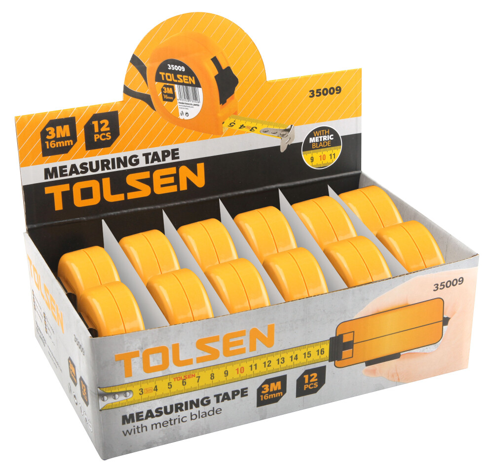 Ruleta Tolsen, 3 m x 16 mm, carcasa PVC.