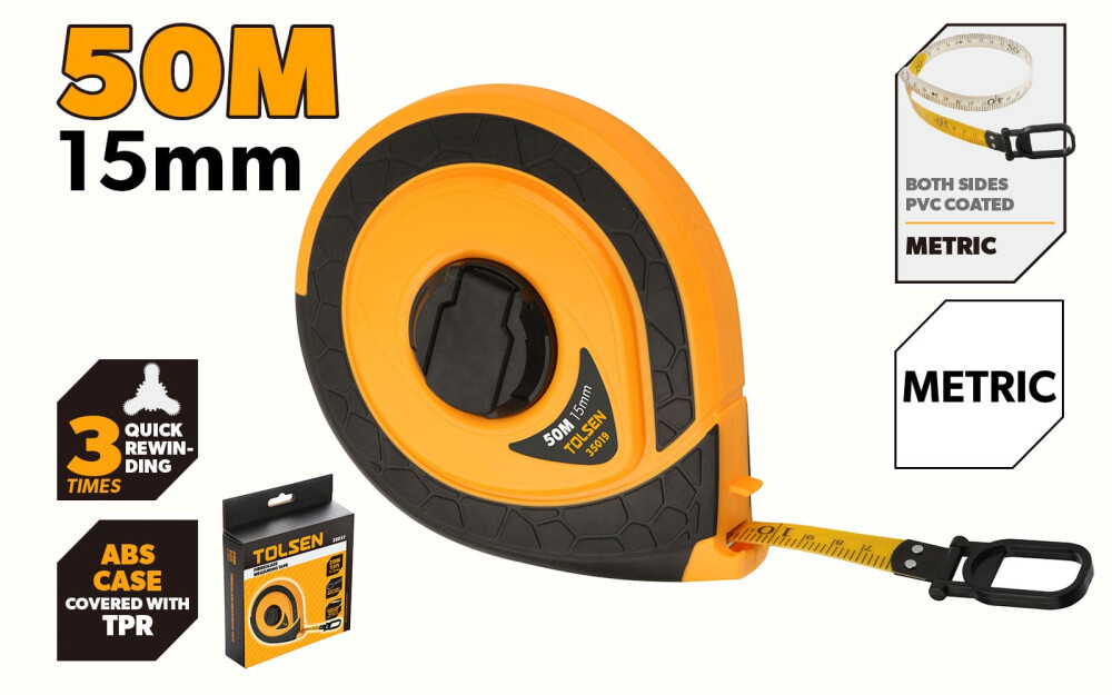 Descopera durabilitatea si precizia Ruletei Tolsen din Fibra de Sticla de 50m cu o latime de 15mm. Aceasta ruleta este special conceputa pentru a face fata celor mai dificile conditii de lucru intr-un mediu industrial.