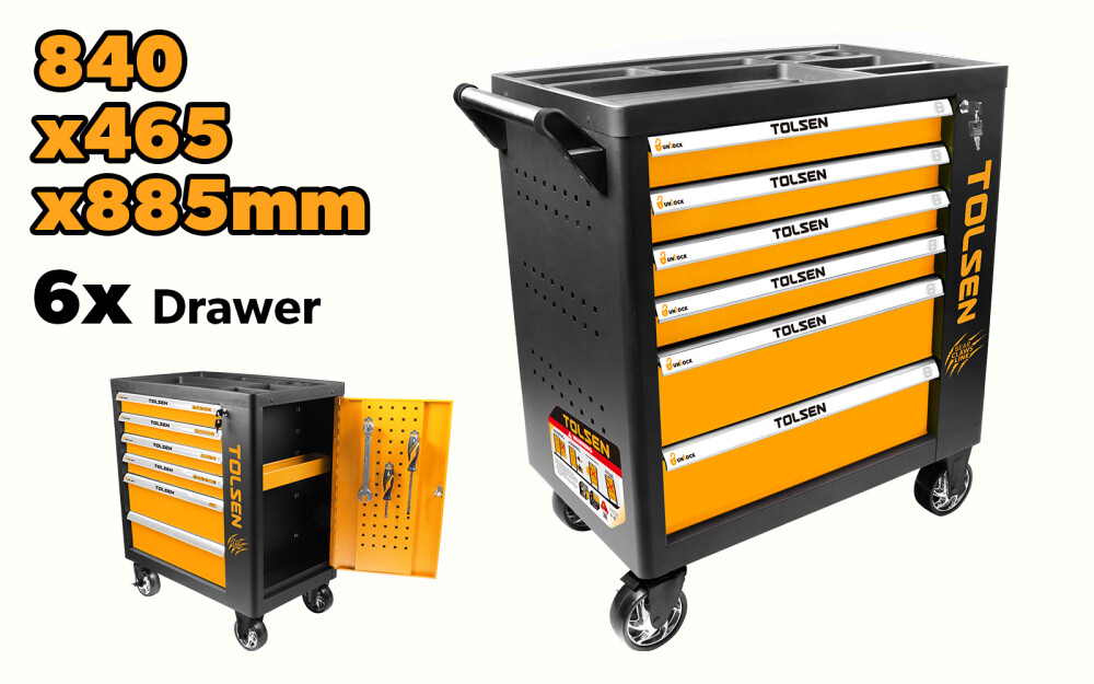 Acest dulap pentru scule este prevăzut cu patru sertare de dimensiunea 549x400x70mm și două sertare de dimensiunea 549x400x140mm, toate dotate cu liner EVA din spumă și cu rulmenți cu bile pentru o operație lină și de durată.