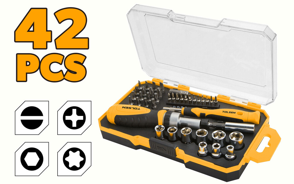 Setul de varfuri si de chei tubulare de 42 de bucati - Tolsen este instrumentul ideal pentru orice sarcină de înșurubare, fie că este vorba despre repararea mobilierului sau asamblarea unui computer. Cu acest set de 42 de bucati, nu veți mai căuta niciodată un instrument potrivit pentru sarcinile de înșurubare.